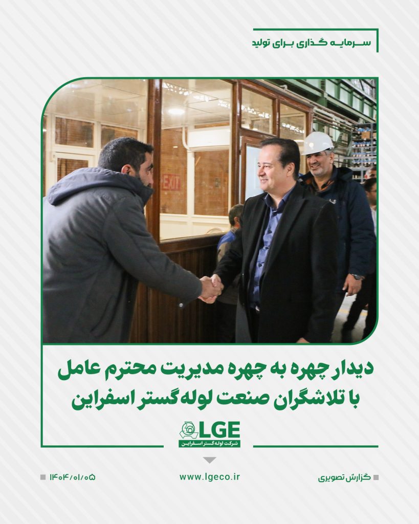 این دیدار نوروزی که نشان از عزم راسخ شرکت لوله گستر اسفراین برای رشد و پیشرفت در سال ۱۴۰۴ دارد؛ سالی که با همدلی و تلاش همه جانبه کارکنان، میتواند مسیر موفقیتهای بیشتری را هموار کند.