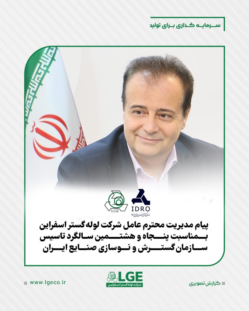پیام مدیریت محترم عامل شرکت لوله گستر اسفراین بـمناسبت پنجاه و هشتمین سـالگرد تاسیس ایدرو