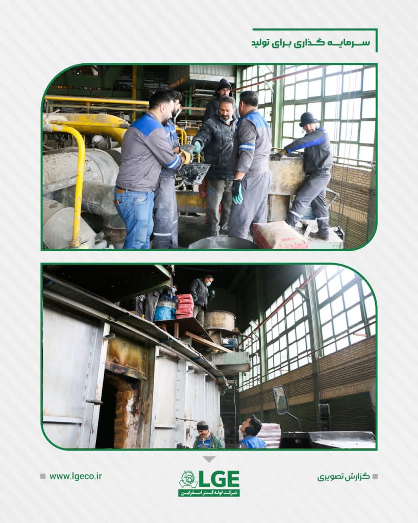 •بتن‌ریزی سقف و کف کوره به‌منظور ترمیم و تقویت ساختار نسوز •تعویض چندین مشعل و تنظیم سیستم احتراق •تعویض و تنظیم پرده هوا و انجام نسوزکاری درب‌های کوره